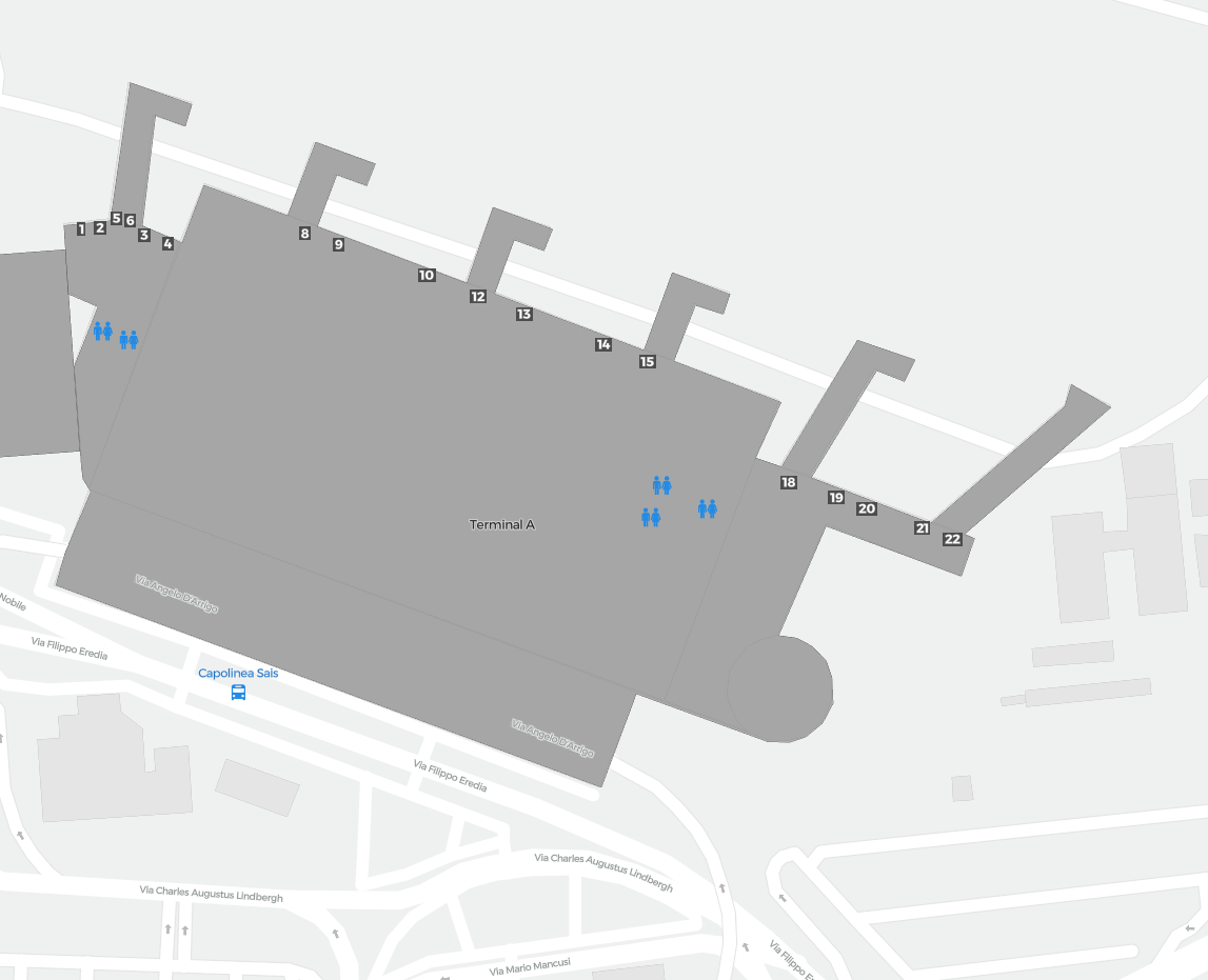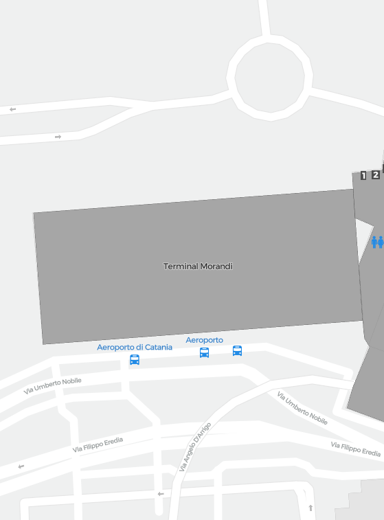 Este es un mapa ampliable de Catania (CTA). Ofrece una visión general del exterior con terminales y estacionamientos. En algunos aeropuertos también muestra detalles de puertas, servicios de coches de alquiler y otras comodidades al hacer zoom.