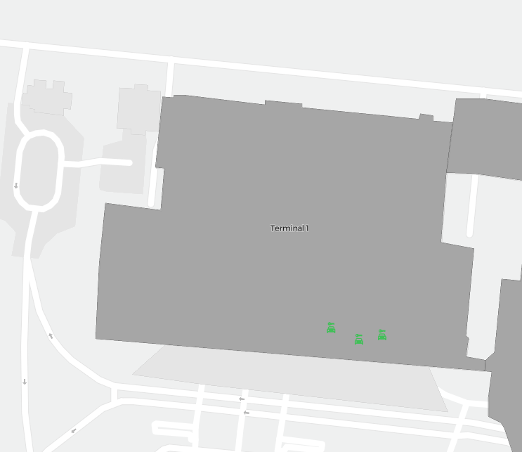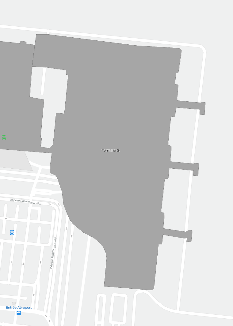 Este es un mapa ampliable de Marrakech (RAK). Ofrece una visión general del exterior con terminales y estacionamientos. En algunos aeropuertos también muestra detalles de puertas, servicios de coches de alquiler y otras comodidades al hacer zoom.