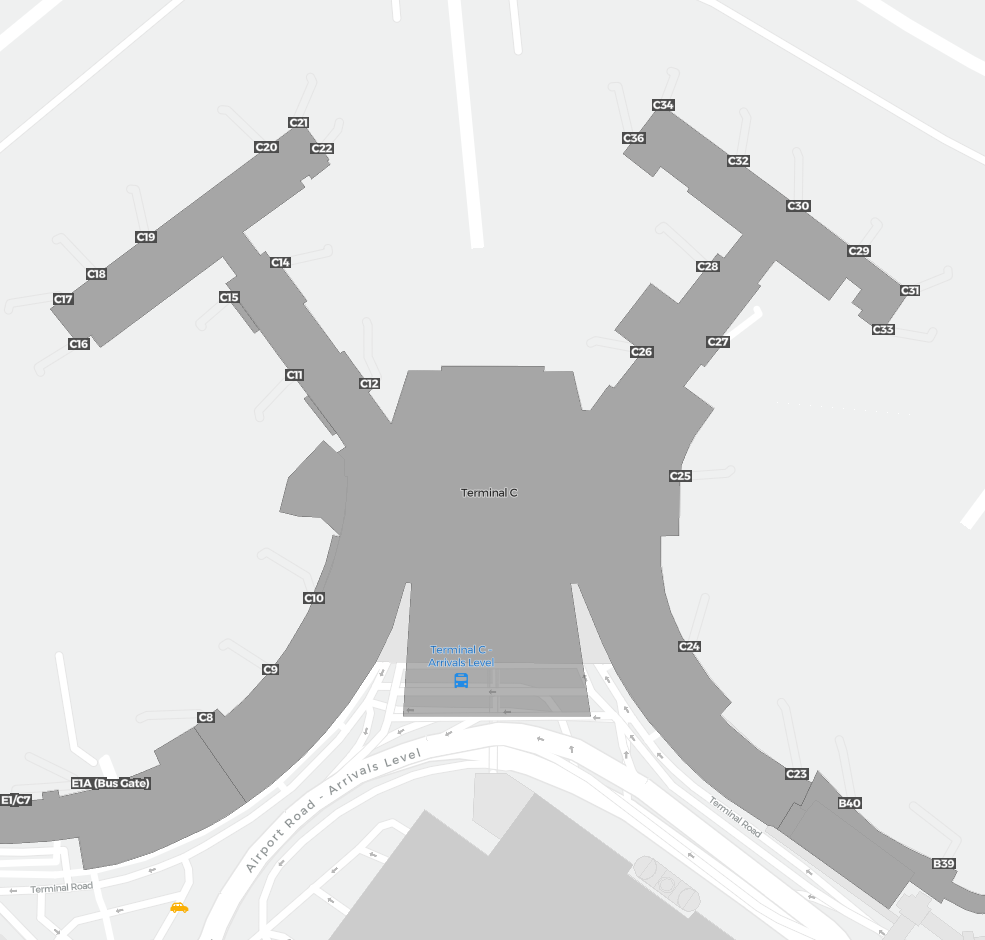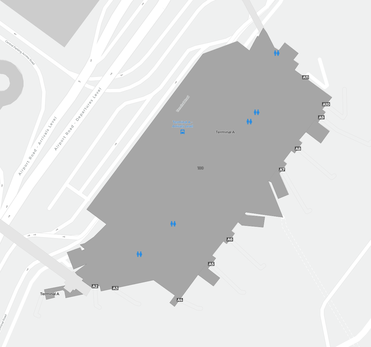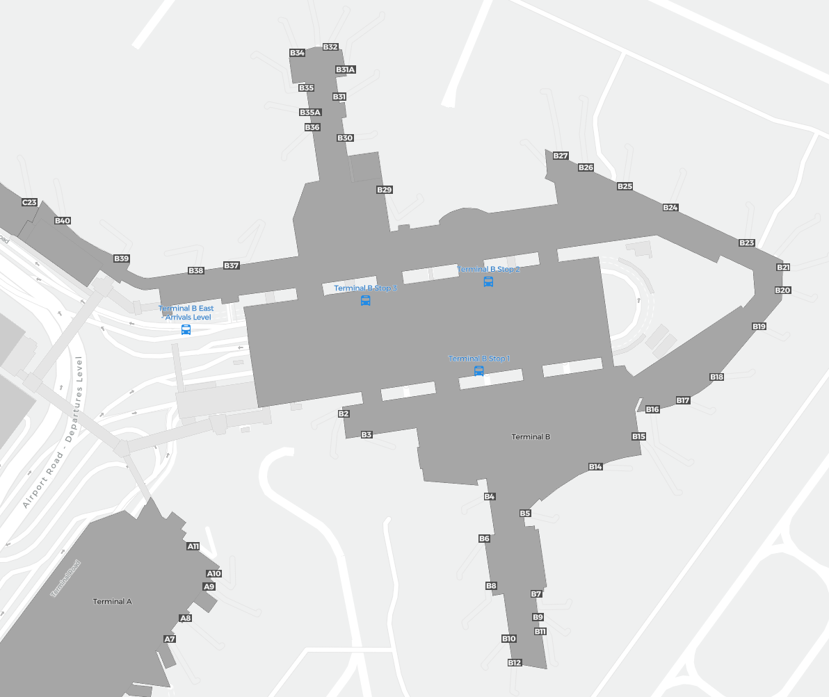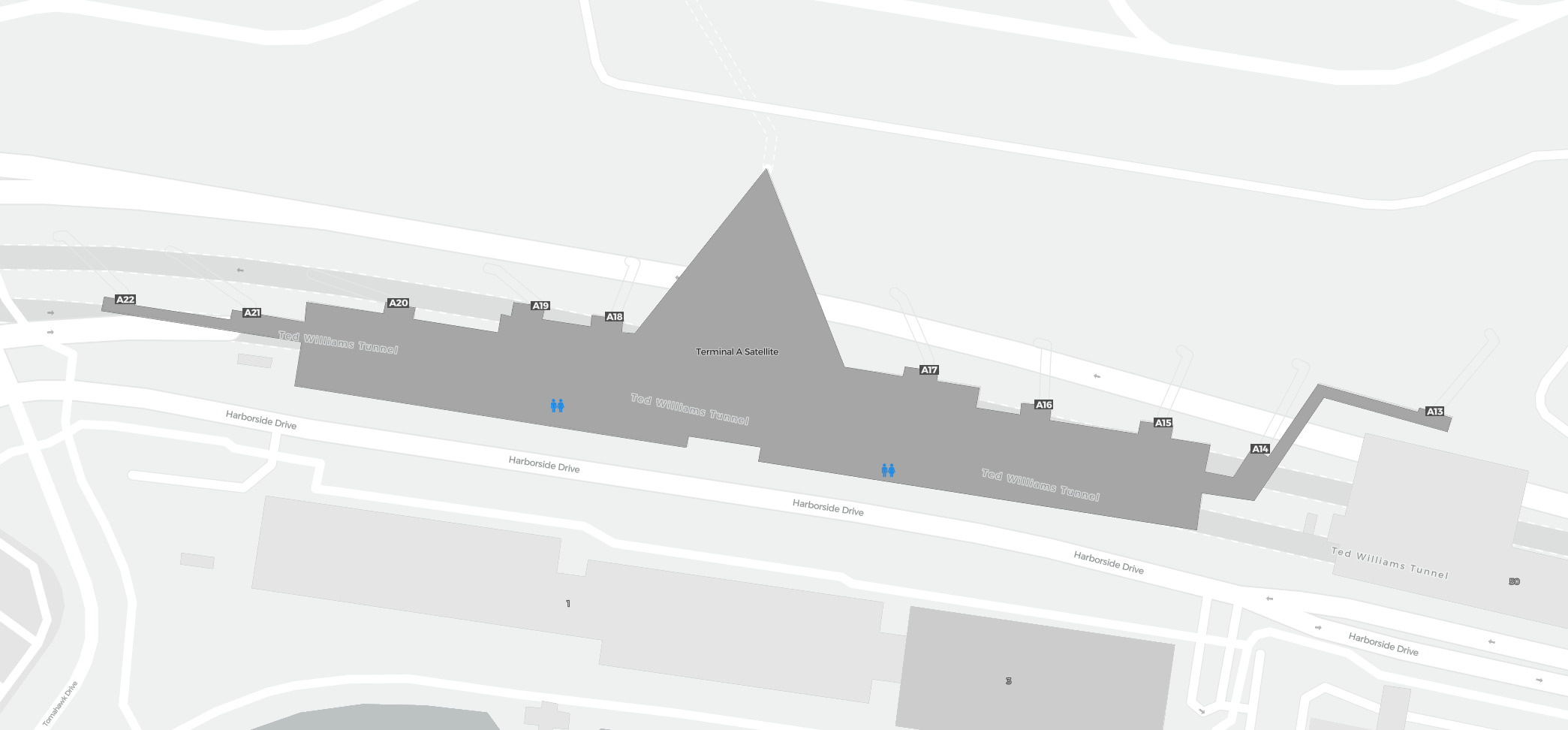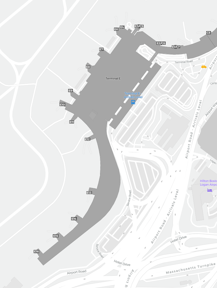 Este es un mapa ampliable de Boston (BOS). Ofrece una visión general del exterior con terminales y estacionamientos. En algunos aeropuertos también muestra detalles de puertas, servicios de coches de alquiler y otras comodidades al hacer zoom.
