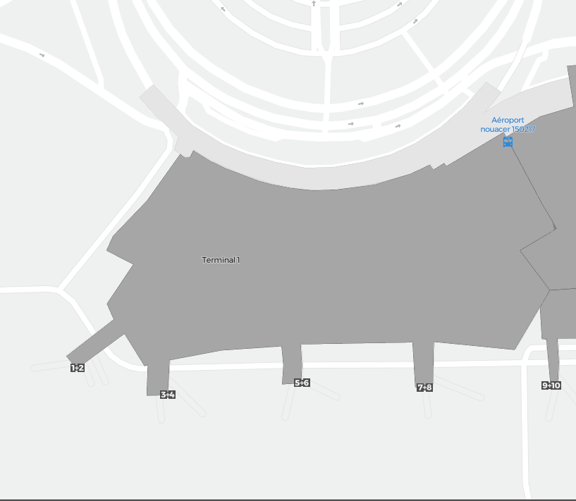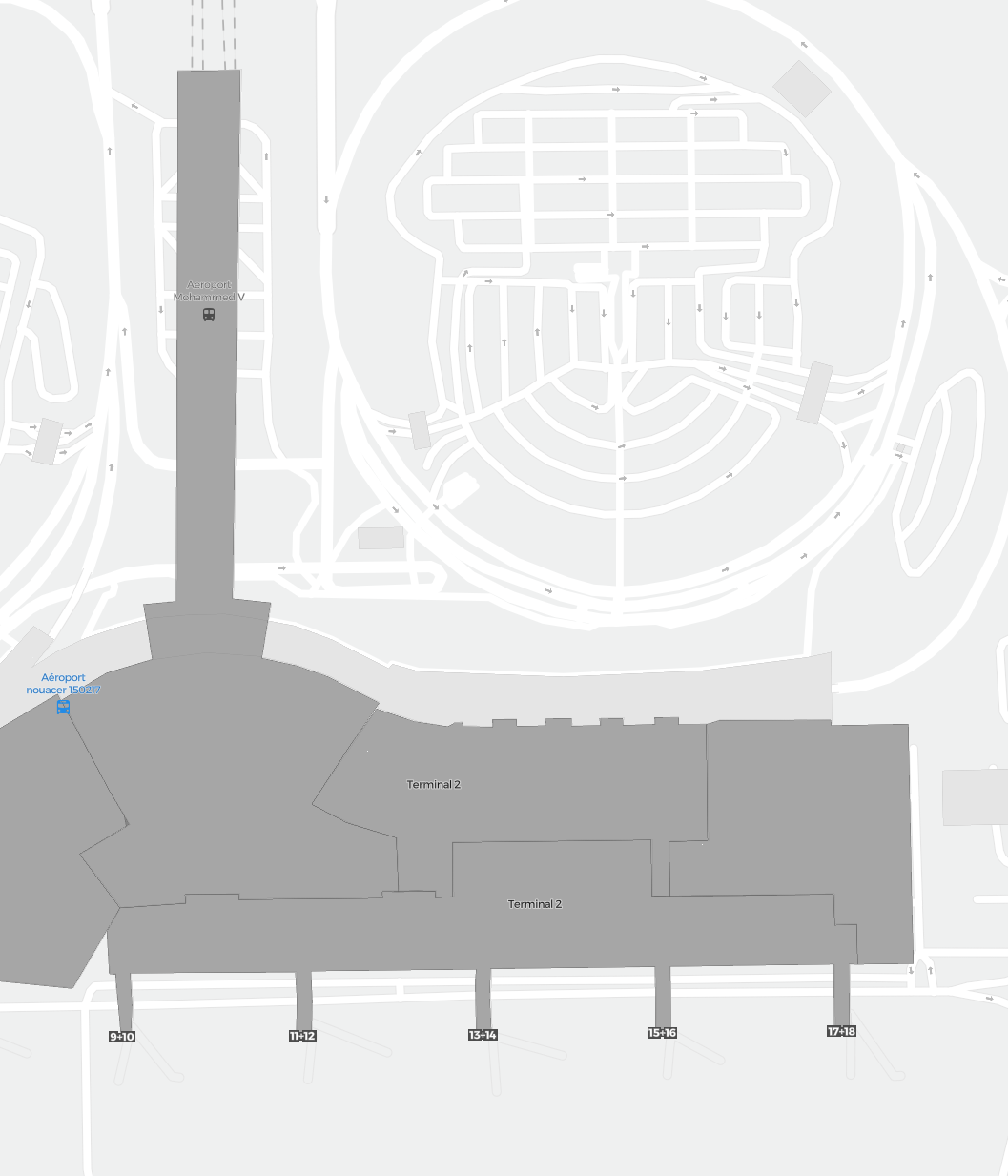 Este es un mapa ampliable de Casablanca (CMN). Ofrece una visión general del exterior con terminales y estacionamientos. En algunos aeropuertos también muestra detalles de puertas, servicios de coches de alquiler y otras comodidades al hacer zoom.