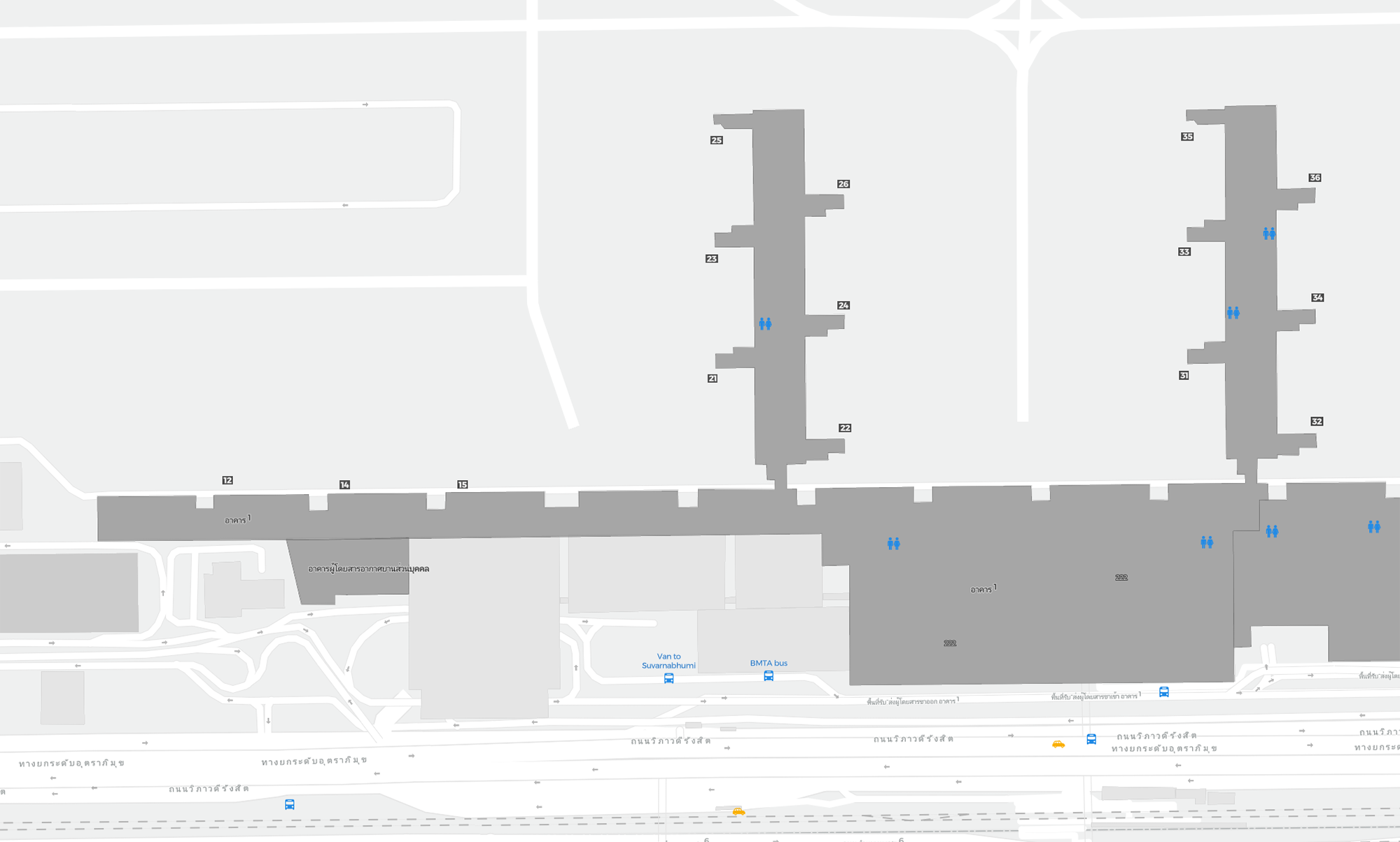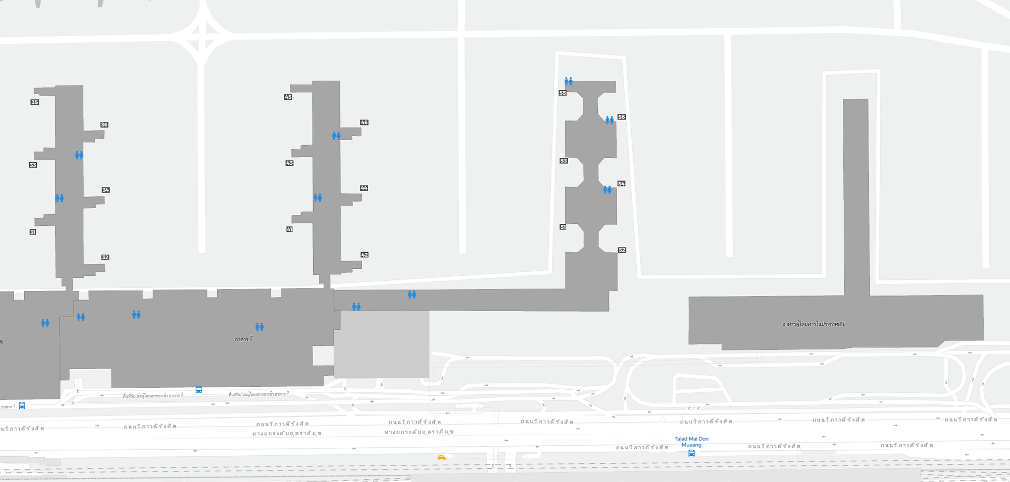 Este es un mapa ampliable de Bangkok (DMK). Muestra una vista general del exterior, con las terminales y los aparcamientos. En algunos aeropuertos, al acercar el zoom, también podrás ver detalles de las puertas de embarque, servicios de alquiler de coches y otras instalaciones.
