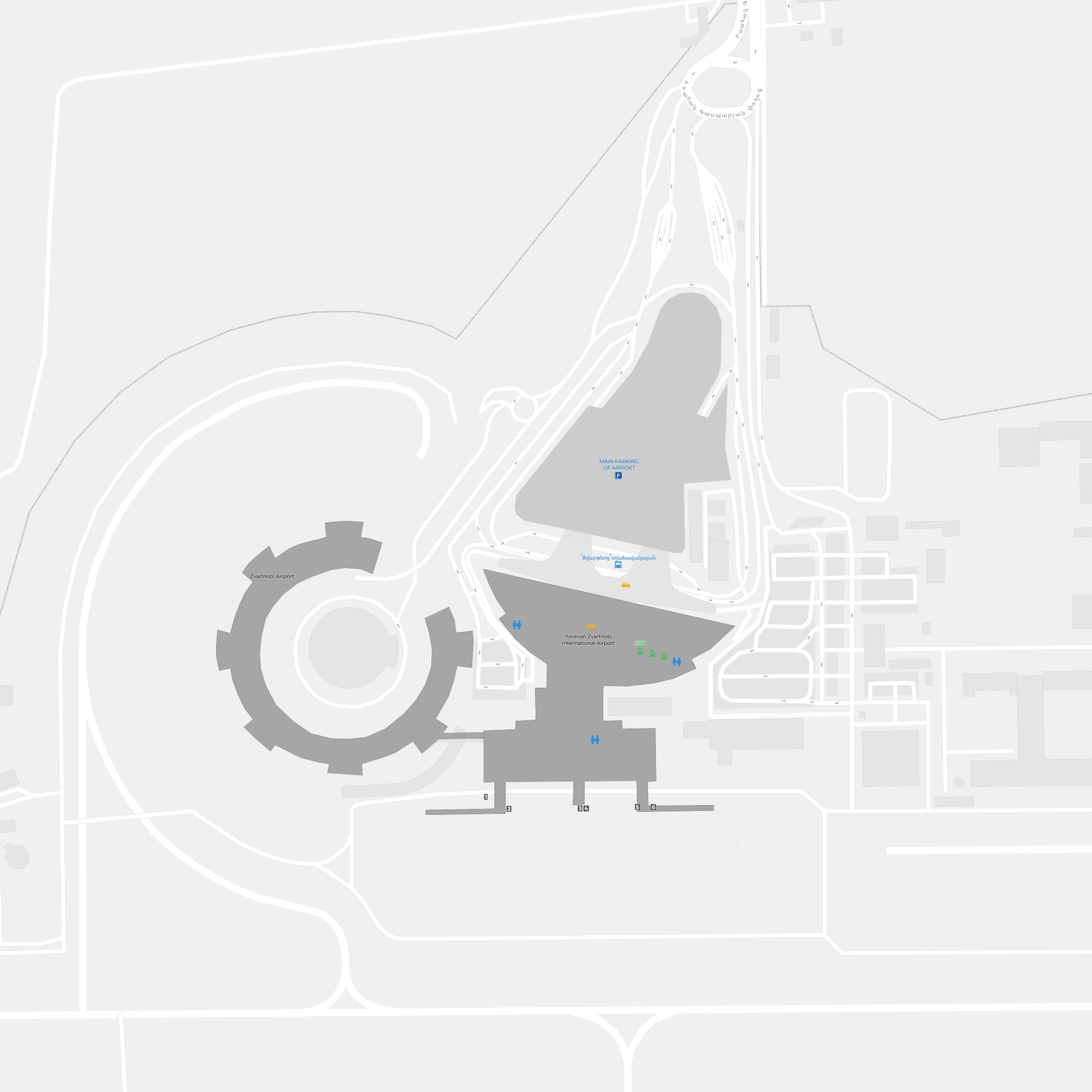 Este es un mapa ampliable de Ereván (EVN). Muestra una vista general del exterior, con las terminales y los aparcamientos. En algunos aeropuertos, al acercar el zoom, también podrás ver detalles de las puertas de embarque, servicios de alquiler de coches y otras instalaciones.