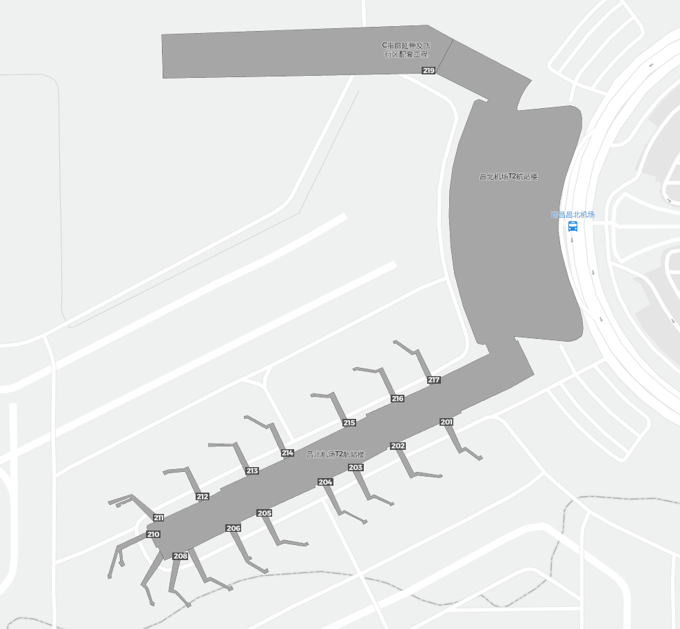 Este es un mapa ampliable de Nanchang (KHN). Muestra una vista general del exterior, con las terminales y los aparcamientos. En algunos aeropuertos, al acercar el zoom, también podrás ver detalles de las puertas de embarque, servicios de alquiler de coches y otras instalaciones.