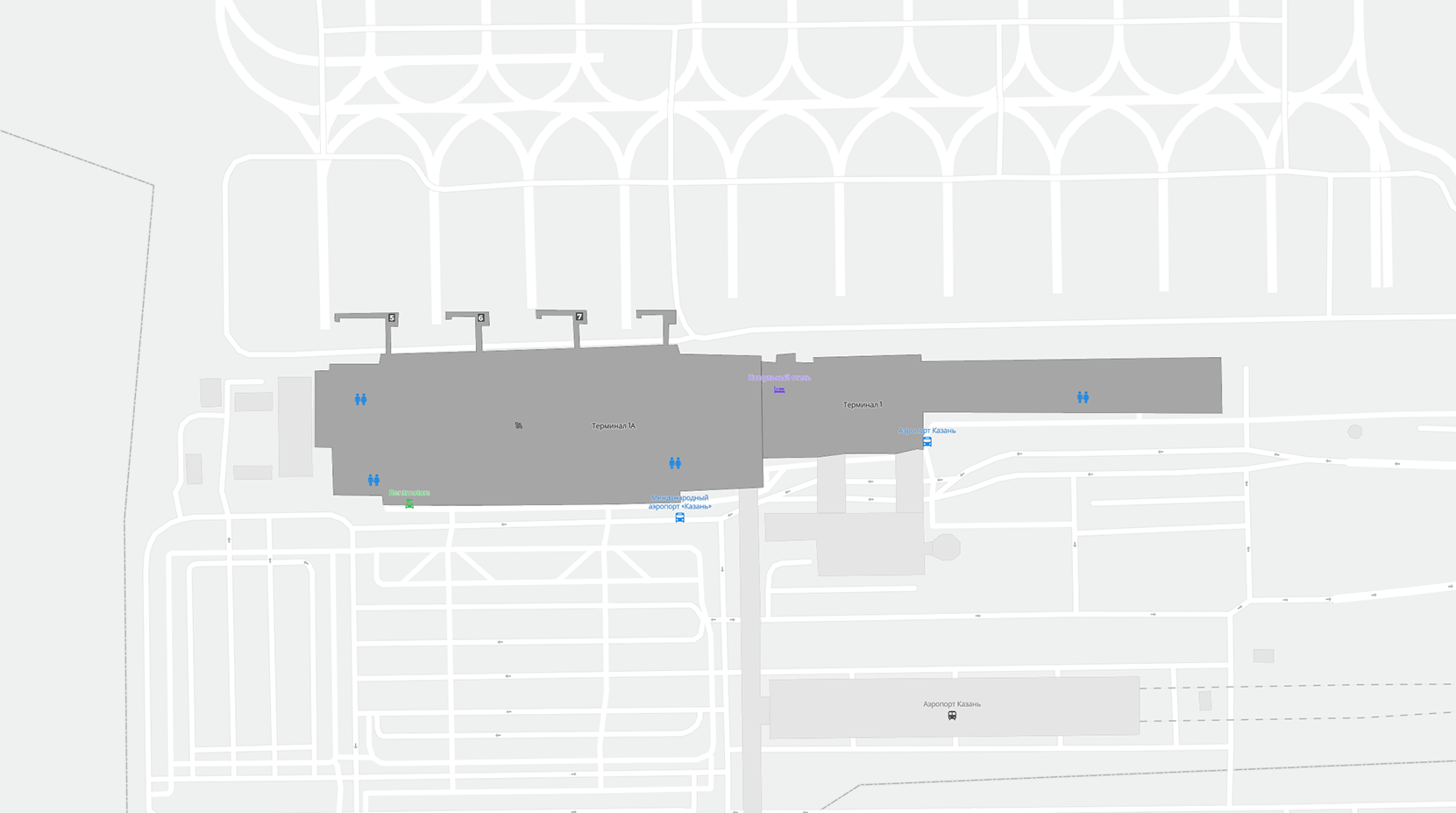 Este es un mapa ampliable de Kazán (KZN). Muestra una vista general del exterior, con las terminales y los aparcamientos. En algunos aeropuertos, al acercar el zoom, también podrás ver detalles de las puertas de embarque, servicios de alquiler de coches y otras instalaciones.