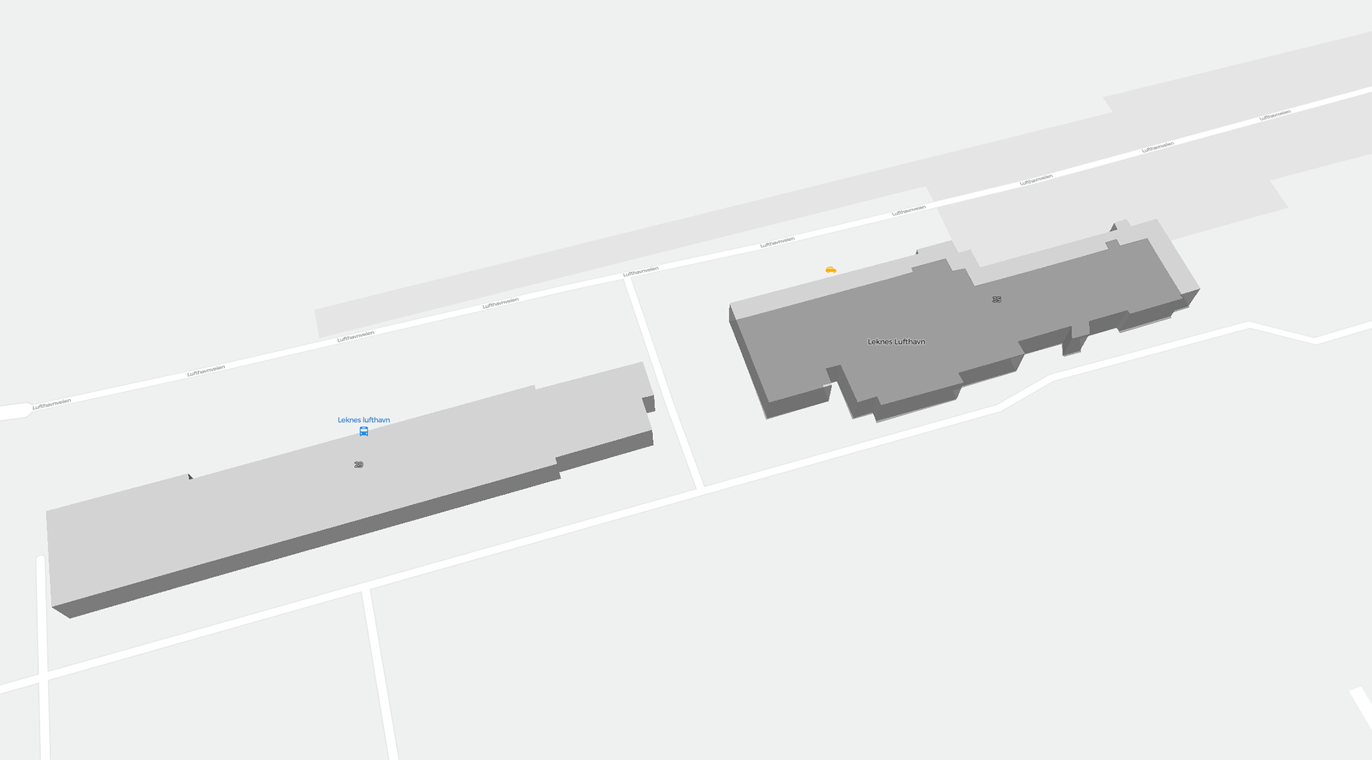 Este es un mapa ampliable de Leknes (LKN). Muestra una vista general del exterior, con las terminales y los aparcamientos. En algunos aeropuertos, al acercar el zoom, también podrás ver detalles de las puertas de embarque, servicios de alquiler de coches y otras instalaciones.