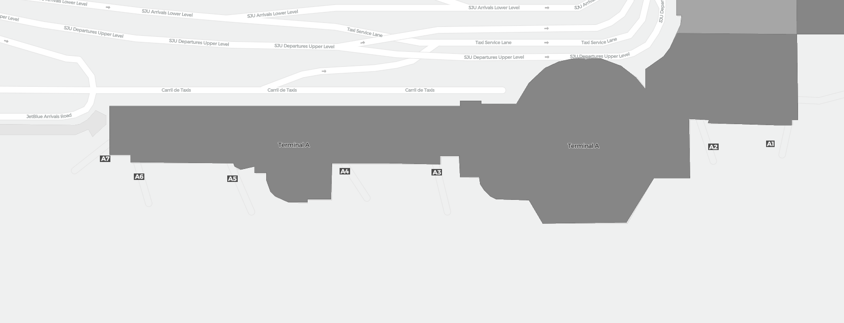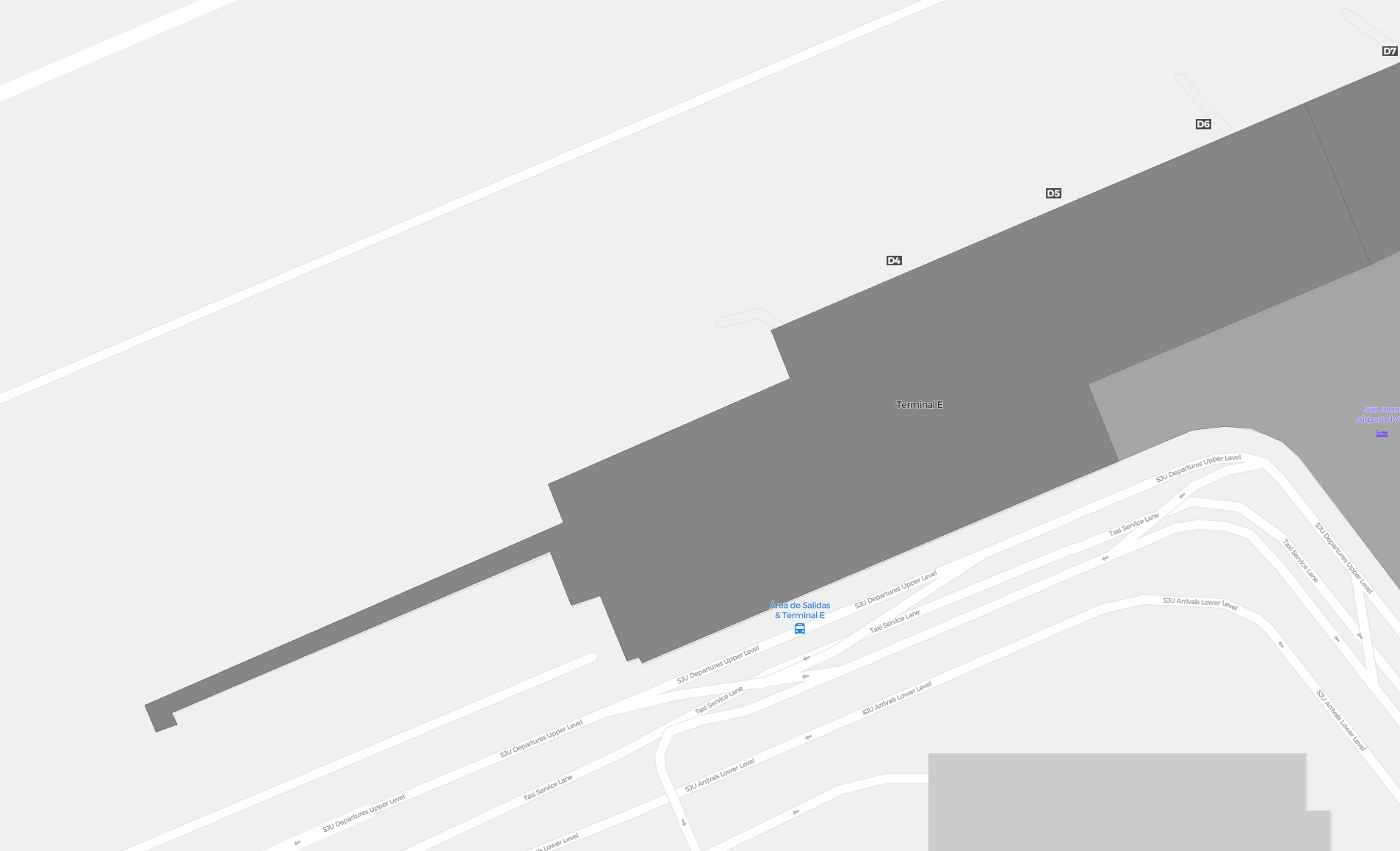 Este es un mapa ampliable de San Juan (SJU). Muestra una vista general del exterior, con las terminales y los aparcamientos. En algunos aeropuertos, al acercar el zoom, también podrás ver detalles de las puertas de embarque, servicios de alquiler de coches y otras instalaciones.