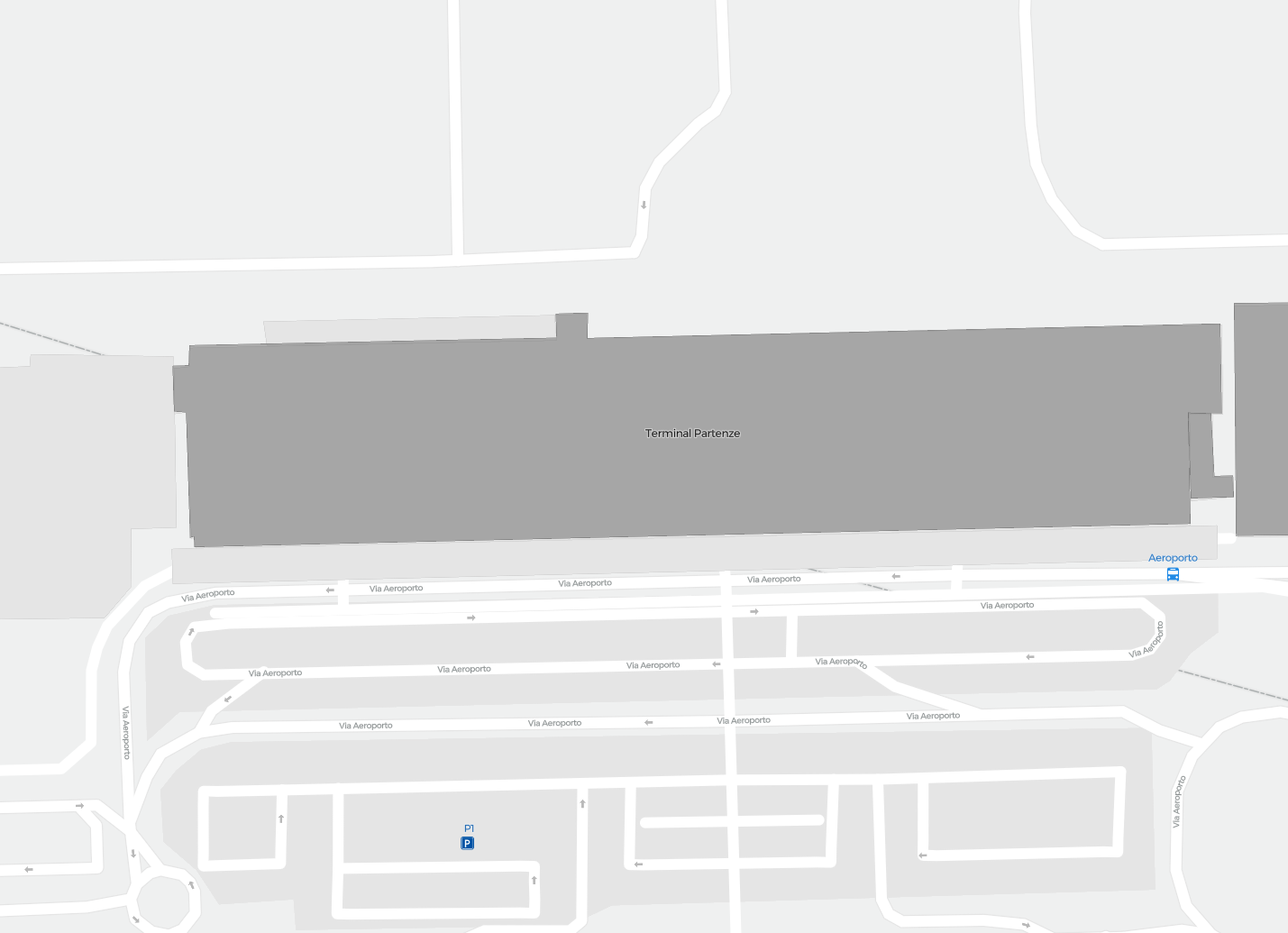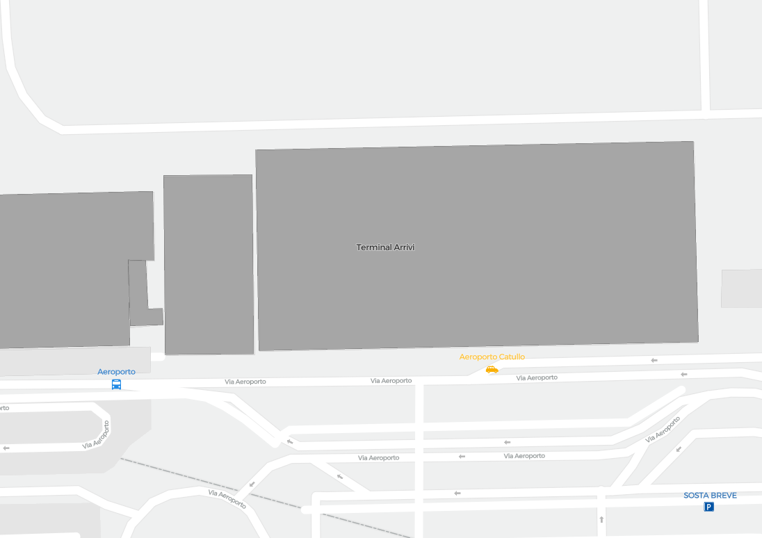 Este es un mapa ampliable de Verona (VRN). Ofrece una visión general del exterior con terminales y estacionamientos. En algunos aeropuertos también muestra detalles de puertas, servicios de coches de alquiler y otras comodidades al hacer zoom.